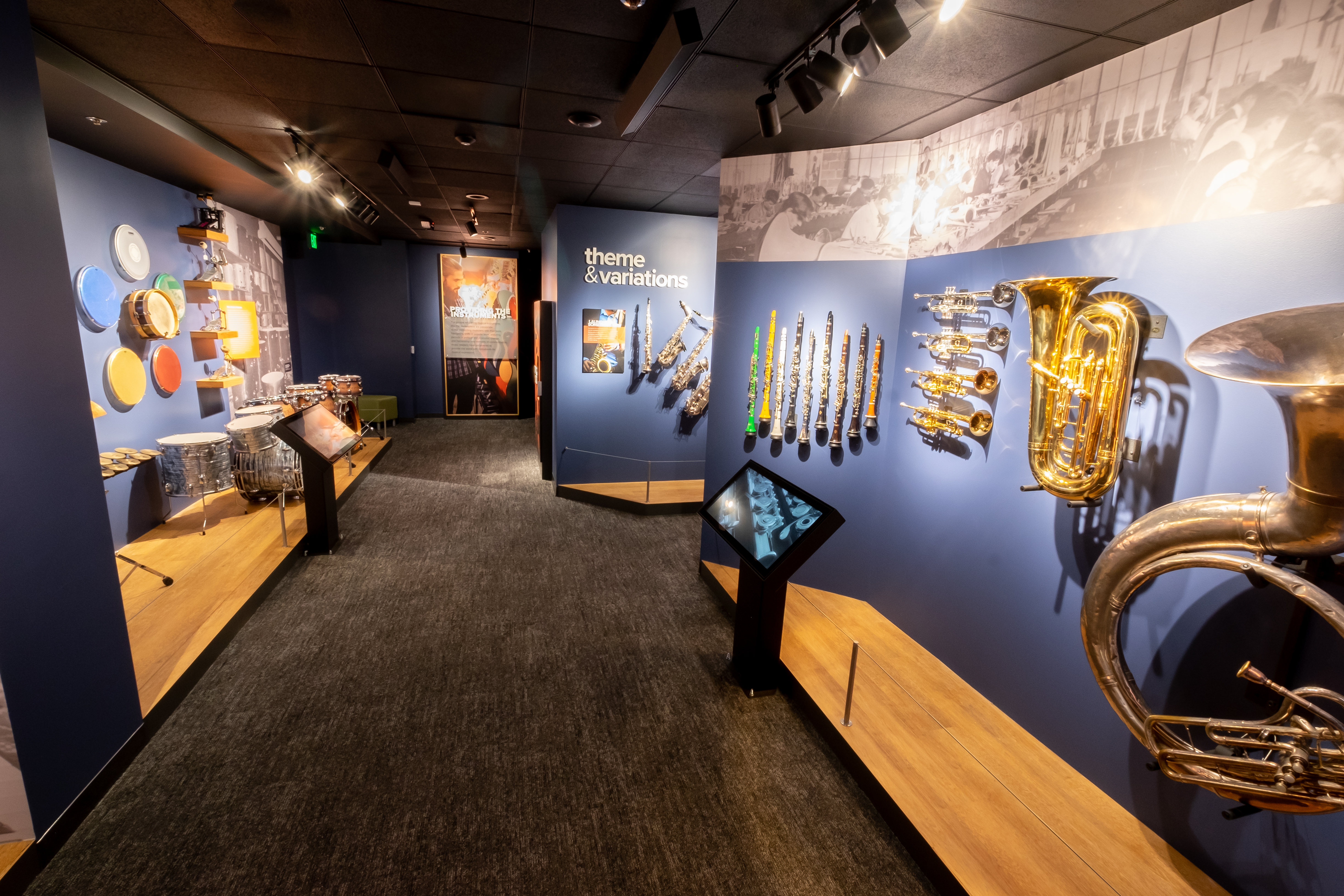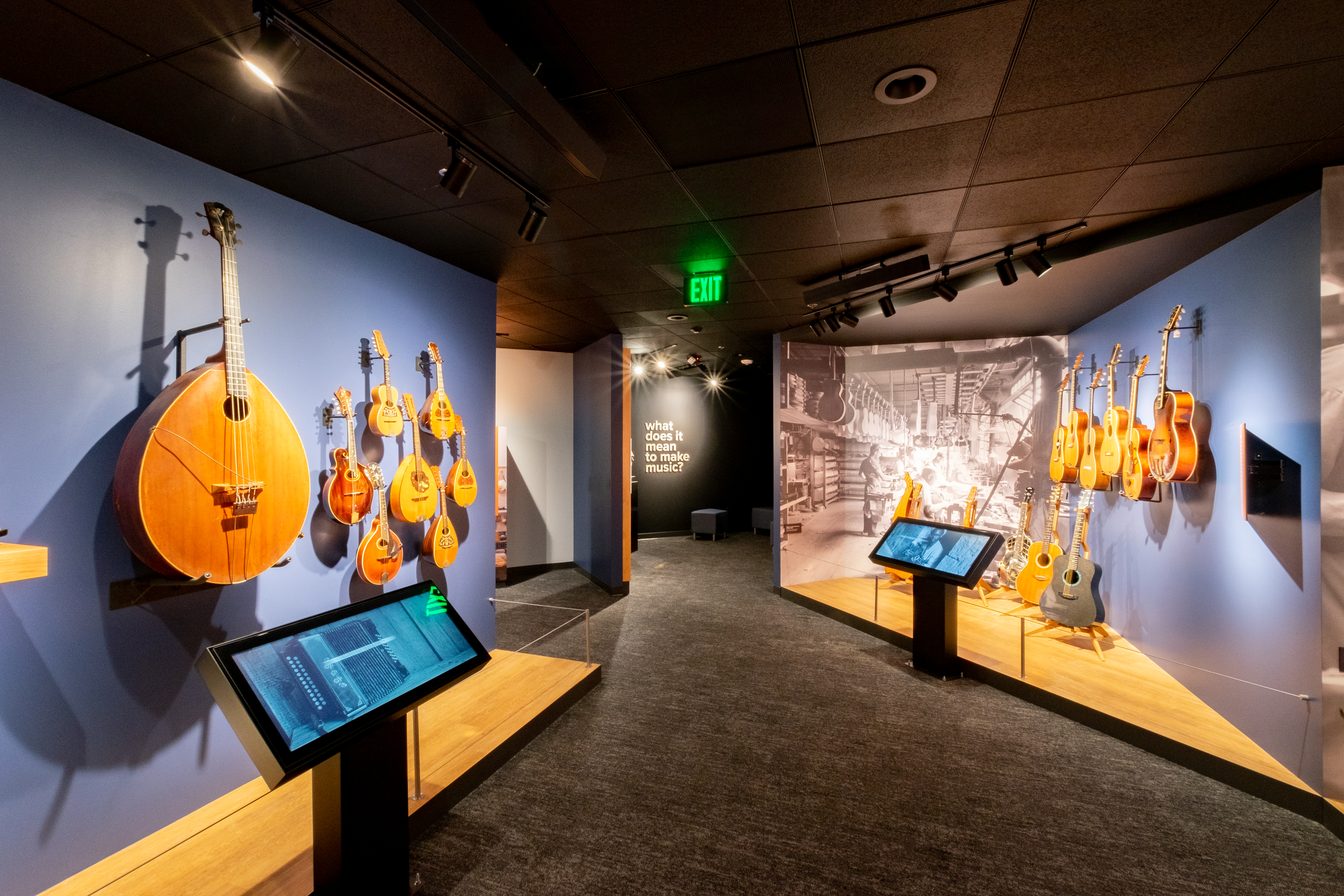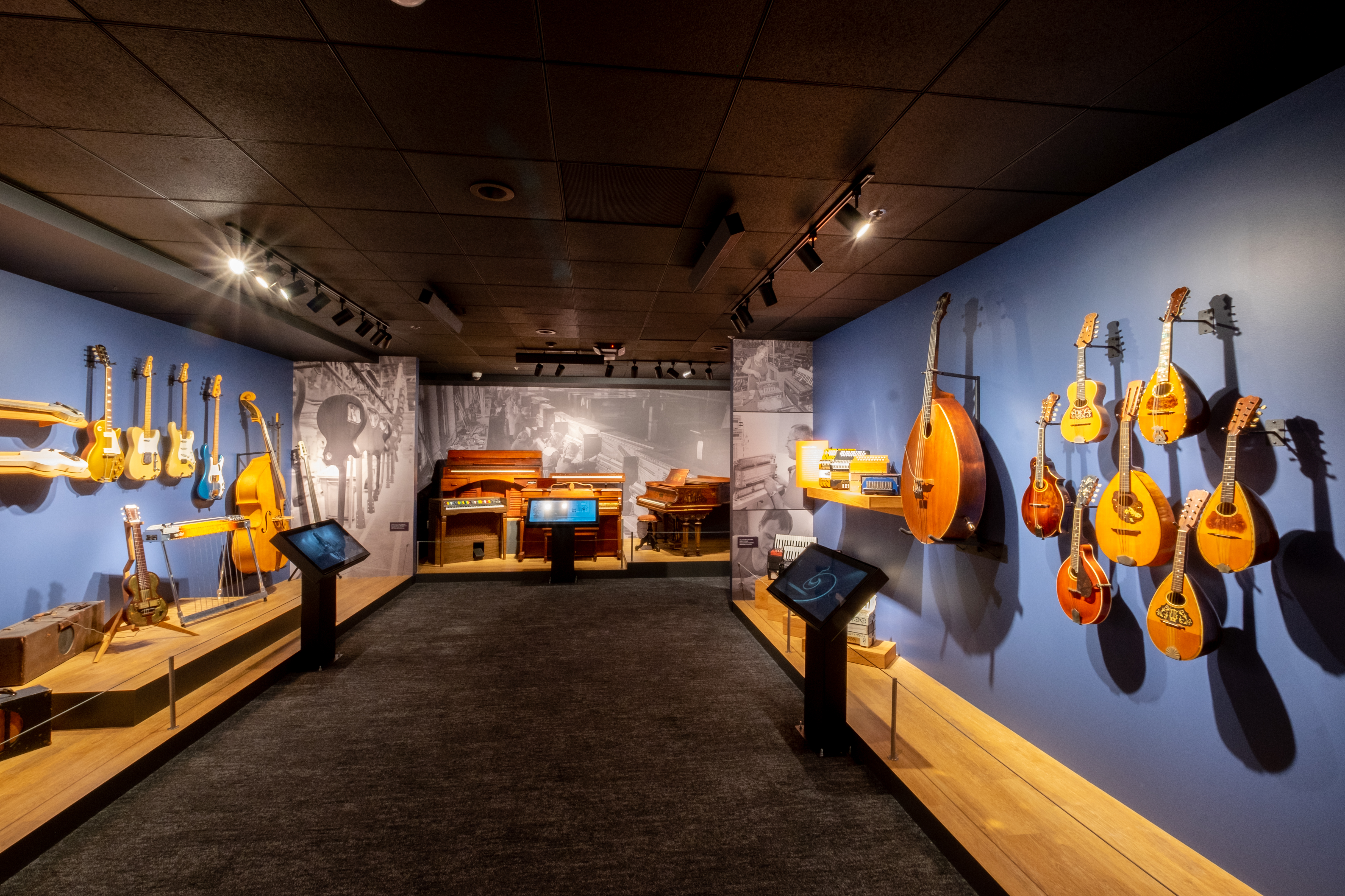 Content: Completely rewritten storylines centered around the “industry ecosystem” of ”make, sell, use.” The first gallery, ”Making the Instruments,” presents stories about the drivers of change affecting instrument development, such as the need for musicians to be heard among larger ensembles, the movement of peoples across the globe, the rise and fall of popular music styles, and more. The second gallery, ”Providing the Instruments,” explores social, economic, and cultural factors impacting the industry and its retail operations during five distinct historical periods. The third gallery, ”Using the Instruments,” features a wall-to-wall video presentation about the emotional power of music. The fourth gallery, ”Beyond the Instruments,” presents four stories about the cultural impact of instruments and their abilities to function as something more than tools for producing sound.