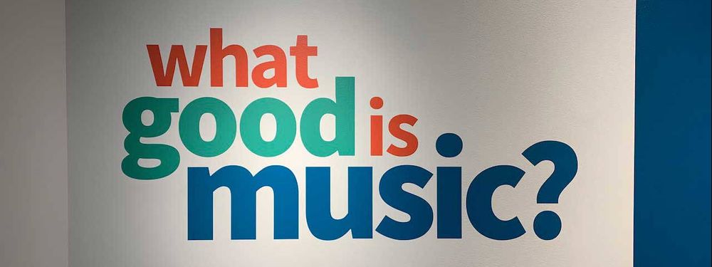 Content: Three primary questions: “What good is music for me?”, “What good is music for us?”, and “What good is music for the world?“. Each question is accompanied by a contextualizing statment, e.g. about how music can be used in daily life for positive outcomes or how music can connect groups of people with external activities or sentiments.