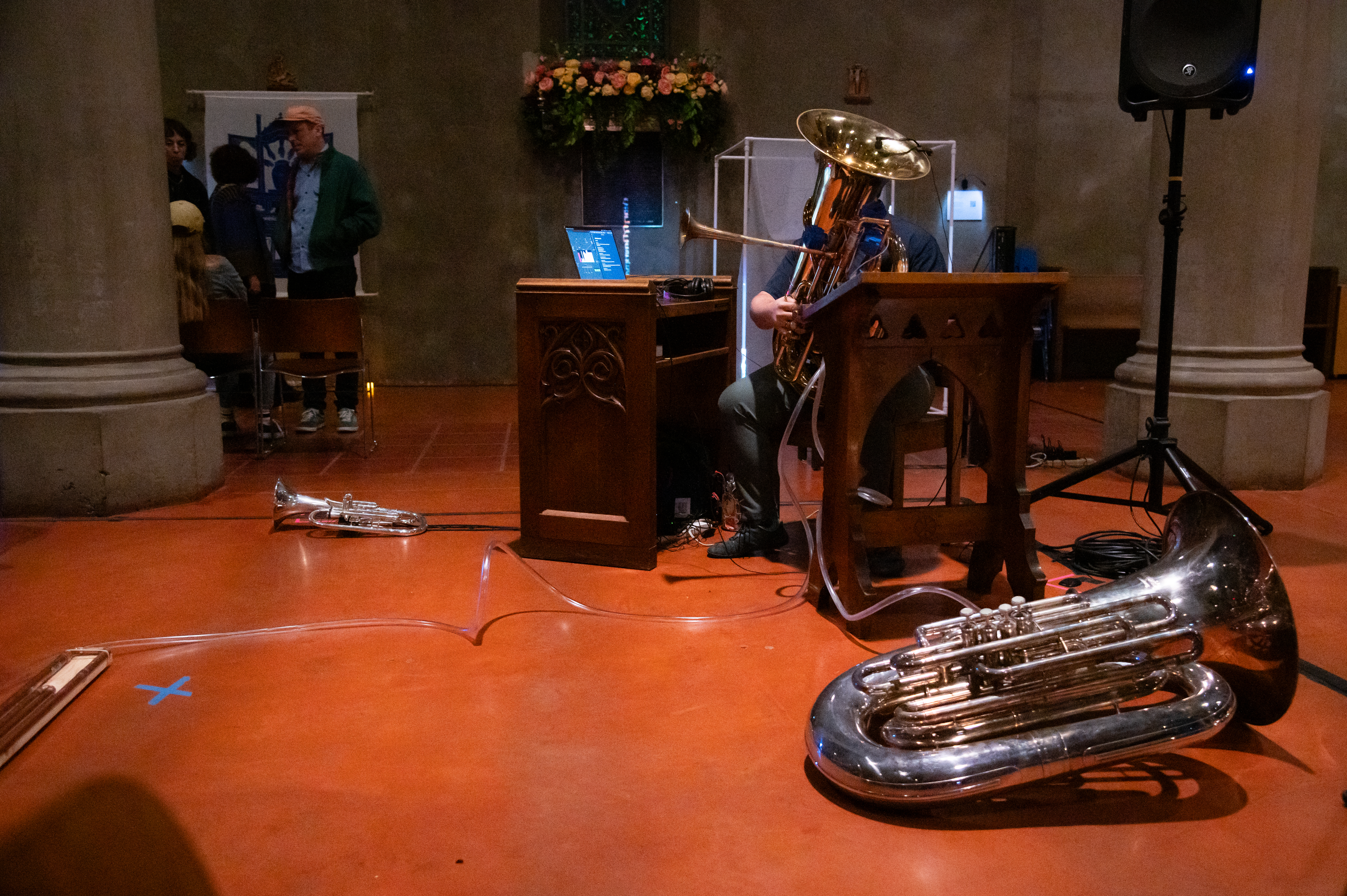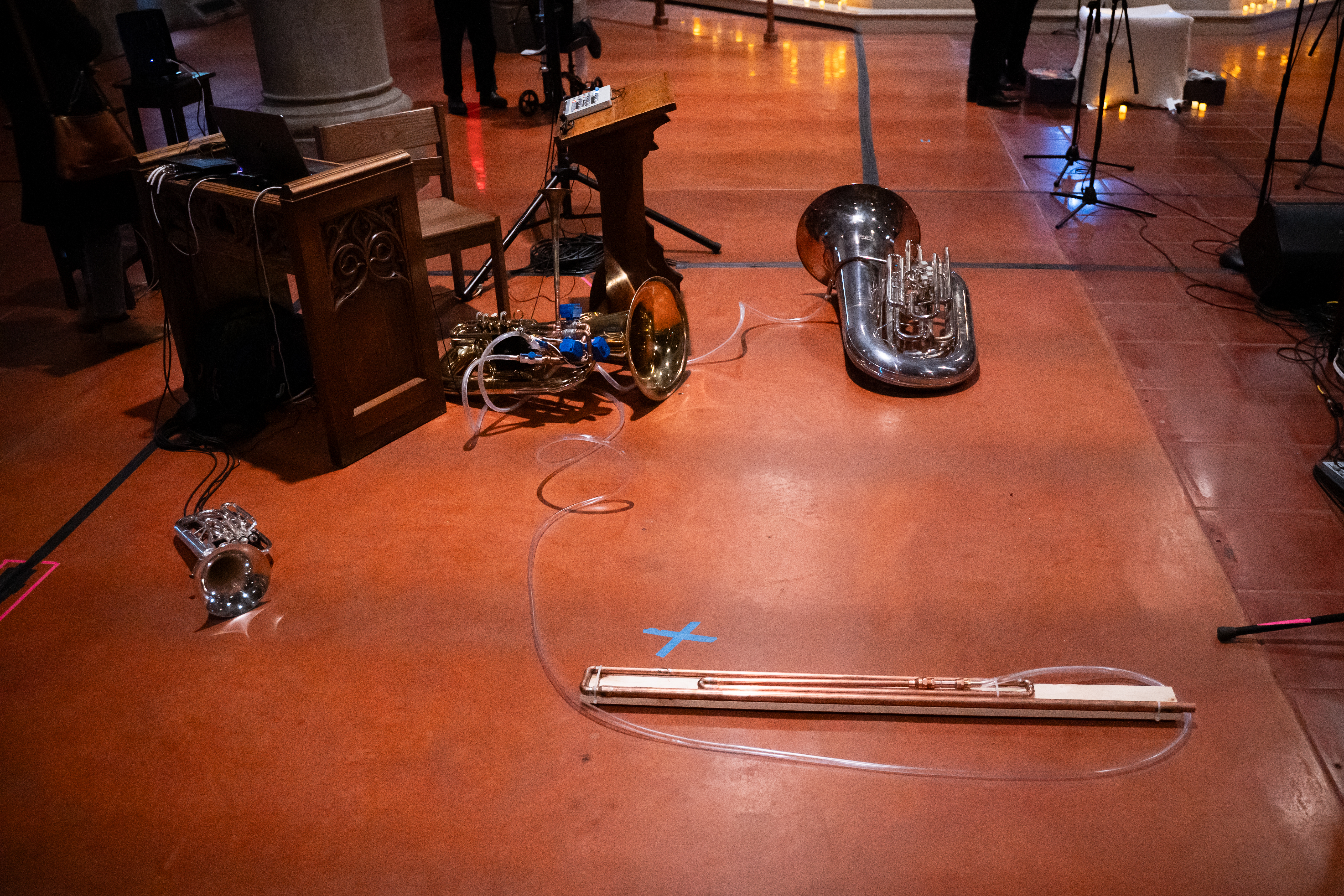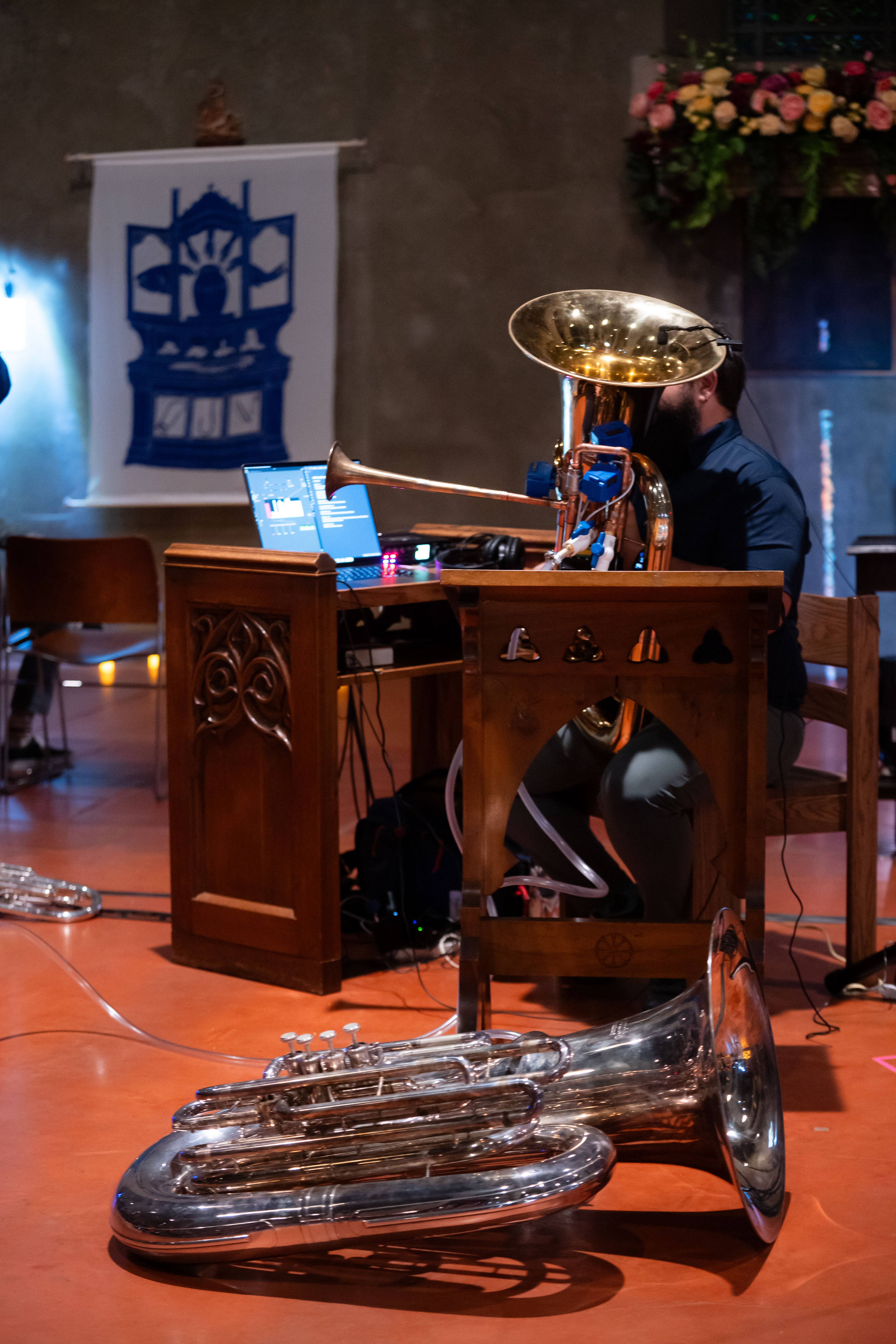 The piece then presents an overabundance of production: a tuba modified with a second bell and valves to divert air elsewhere, namely a second tuba and a custom reed-based resonator. The tubas play series of notes reminiscent of birdsong and plainchant, alternating and building in intensity to prove their worth in the eyes of their Creator.